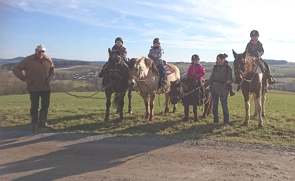 Von Gymnastik am und auf dem Pferd über entspannende Aus-und Wanderritte durch die Natur, bis zum wettkampforientiertem Reiten ist alles vertreten. Mit dem Partner als Pferd können sie viele neue Dinge an sich und um sich herum entdecken. Wir bewirtschaften einen landwirtschaftlichen Grünlandbetrieb mit Pferdehaltung. Viele unserer Schulpferde stammen aus unserer eigenen Zucht. Aktuell besitzen wir einen Quarter Horse Hengst, dessen Nachwuchs wir aufziehen, selbst ausbilden und zum Teil auch verkaufen. Die Schulpferde sind aus verschiedenen Rassen nach ihrem Charakter ausgewählt. Unsere Wiesen und Weiden werden extensiv genutzt, das heißt, es werden kein Kunstdünger und keine Spritzmittel eingesetzt. Außerdem werden sie abwechselnd beweidet und gemäht. Die Pensionspferde und unsere eigenen Pferde werden natürlich und robust gehalten. Das bedeutet, dass sie die ganze Zeit im Jahr, auf ausgesuchten Koppeln leben.